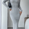 Dieses langärmelige Strickkleid besticht durch sein elegantes, figurbetontes Design mit einem Seitenschlitz für zusätzliche Bilden. Die gerippte Struktur und der Ausschnitt verleihen ihm ein edles Beenden, das sich sowohl tagsüber als auch abends gut trägt.