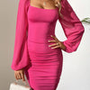 Gerüschtes, langärmliges, figurbetontes Kleid für Damen